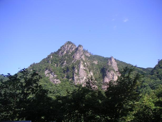 寝不足だが、ピカピカに晴れている☆。 岡山からのYさんと合流し、今回のメンバーはT君、Kさん、Yさんとボクの4人。 取り付きにて。 地蔵岳の東稜ルート5P。230m。 T君とペアを組み、トップで登る。 フェイスとスラブの中間ぐらいの出だし。残置はなし。 終了点までの間に、プロテクションは2つぐらい。 ぜったい落ちれません。 2P。つるべでT君トップ。 1P目よりスラブちっく。フォローなんで快適クライミング。 意外と悪く、一番いやらしいPでした。 3P。出だしは、まともにバーチカル。フリークライマーには楽しめるようなフェイスをこえ、スラブを駆け上がる。 後で聞いた話だと、人工ルートだったらしいが。。。 4P取り付きで、小休止。 YさんKさんパーティーも上って来て、先に行ってもらった。 ここは通称「馬の背」と呼ばれているところ。 途中に遭難碑がたてられていた。 ここは高度感があり気持ちが良い☆ 5P目はおまけ的なピッチ。 地蔵岳の頂上へ無事に抜けT君と握手。 雨がパラパラときたので、カッパを着て、ハイキング?コースを 降りる。(少し歩くとまたやんだ。) ちょっとアドベンチャーちっくで楽しい。 鎖やロープが張り巡らされている。 下のほうはフリーっぽく、上の方は岩登り的。全体にはちゃんとした マルチ。帰りには冒険を楽しめた。 雪彦。なかなかいいぞ! 山を下りたらザザ降りになった。。。セーフ。