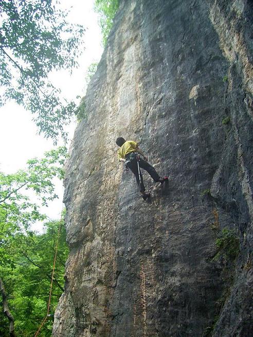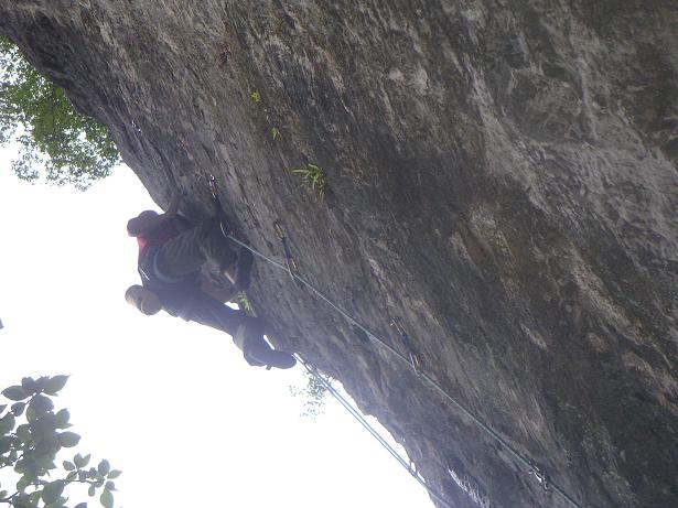 10cでアップし、いつもの11bを何本目にやろうか 考えた。 2本目はまだ早いような・・・3本目は・・・ ん~、どうだろう? 意見を聞いてみると、「3本目がいいんじゃない?」 って言われたので、別の10cをやろうとしたら、「そんな簡単なのやるの?」 結局2本目にやった。 下の核心でホールドを掴みきれず、2回落ちた。 ルーフ部はクリップ核心なんだが、今日は落ちずに上まで抜けた。 上がつながったことによって、希望の光が見えてきた。