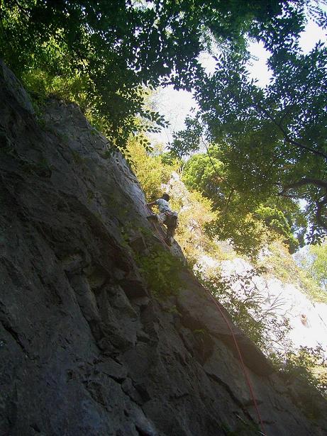 もう鳳来へは地図なしで来れる位だ。 少し遅れてしまったがパラダイスへ向かった。 岩場へのアプローチは六甲山よりキツイ。。。到着したパラダイスは 石川天国(富山1人)。まあ、いつも通りか。 鮎どんにお願いしていた通りに、ドルフィンにはヌンチャクが掛けられていた。 今日のアップは、10b(いつもは時間がもったいないので、ヌンチャク掛けがアップ)。調子はいい。 核心手前のムーブの記憶がうすいので、全体のムーブの再確認をするべく ドルフィンに取り付いた。下部は少し手探りムーブだったが、核心 へ突入。1手、2手とこなし、何故かいきなり違うムーブでガバに 飛びついてしまった。一瞬止まったが、こんなムーブをした自分に ビックリして、落ちてしまった。1テン。 2回3回とトライするが、更にムーブが変化して行き、固まらない。 今回は、クリッピングポイントと、使うホールドを変えた。 この日は何かに取り憑かれたように、ドルフィンを登った。 今日のムーブを固め、落とし時は過ぎ、手も真っ赤になったが、もう一回は行けるだろう。 そう思い込み最後のチャンス。 下部のムーブは自動化。レストポイントも腕を少しシェイクする 程度で通り過ぎ、核心に入った。 核心ムーブもかなり自動化されていて、少し余裕を残してガバを取った。 お次は、両手2本ポッケからガバへのドルフィンジャンプ。 じっくりレストし、タイミングを計って飛びついた。 止まった!ヤッタ、終わった!と思ったら、次のムーブを度忘れした。 苦し紛れに、ホールドを触るが、どれも使えず落ちた。。。 悔しいというより、何故か悲しくなってしまった。。。
