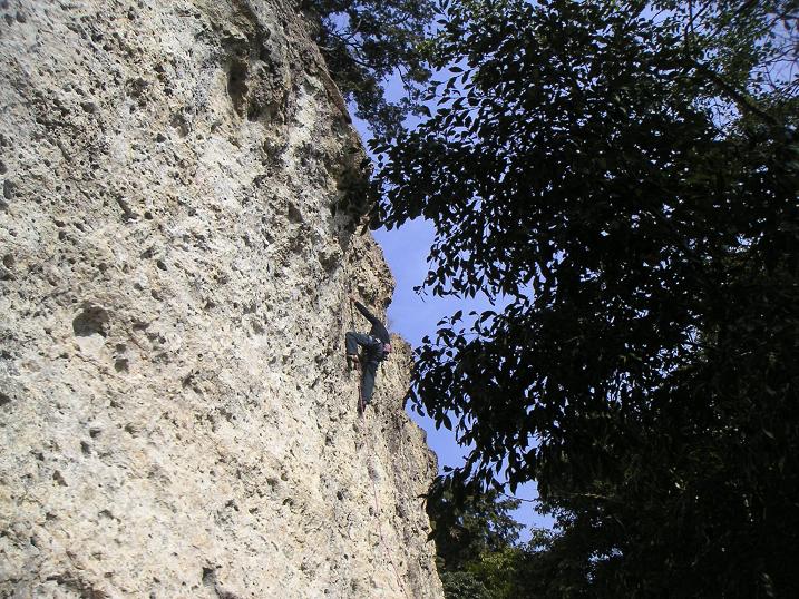 軽くアップし、行くちゃんのビレイをする。 10+にこだわっているのか、10+ばっかりやってやなあ。 さて、新作の11d~。 ~の意味は・・・12かもってことか? やってみる、出来ないムーブはないが、レストポイントがなく、 ボルダーっぽくもないが、持久力勝負って感じだった。 最後に行くちゃんは、最強の10+に取り付いてた。 いつも、僕がやっていて振り落とされている赤スラッシュ。 体感11N。 全然気が付かずやっていて敗退した(笑)