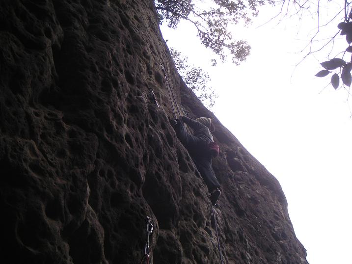 体がだるく筋肉痛。。。 天気もいまいちはっきりせず、モチベーションはどん底。。。 あ○きさんもアバラを痛めていて、あまりやる気がなさそうだ。 しかし、時間は限られているので、再びワイルドボアへ。 ヌンチャクを掛ける。 今日は2回までのトライと決めている。 意外と天気がもって、時間があまってもそれはレストの時間に あて、明日のトライまでに、体力を出来るだけ回復させよう。 これは賭けだ! もしかしたら超回復がくるかもしれないし。。。 出来るだけムーブを固めて終了。 雨が少しぱらつき、センターズと時々センターズは 山を下りた。