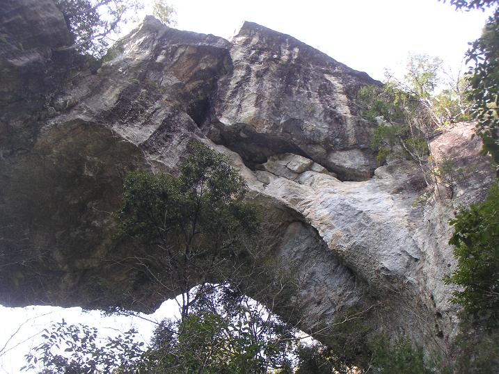 一人になり、鳳来へ移動した。あわよくばドルフィンを・・・ パラダイス駐車場へ到着。車が2台ある。 乗用車だよな。クライマーっぽくはないな。アプローチ長いしなぁー。 って考えると、山に入る気が失せた。 「もう帰ろ」と車に乗り込み走り出す。 あ~いい天気だな。鳳来は今がいい季節なんだろうな~。 って考えると、ただ帰るのが惜しくなり、乳岩峡の方を 見に行くことにした。 行くと、クライマーの車がずらり。こっちかよ! ハイキングコースにもなっているようなので、少し歩くことにした。 色が綺麗です。エメラルド 看板。もう少し先にも看板があり、乳岩と鬼岩の分岐 があります。 乳岩。鍾乳洞より眺める。中にはお地蔵さんがいます。 ジ・アーチ PR