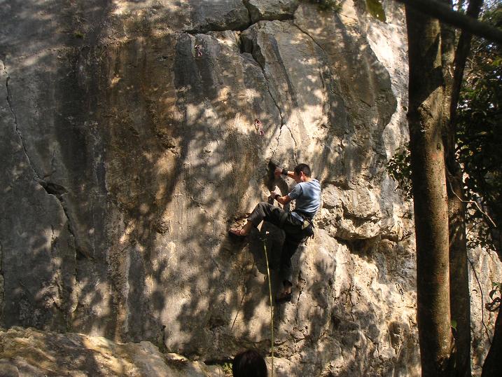 現地で福井組と合流。みんなそれぞれの課題に 熱が入っている。 ボクはブロークンフィンガー11cd。 1便目。とにかく安全第一で(この前グランド寸前だった) ヌンチャクを掛け、下部のムーブを固めていく。 2便目。こま切れだが上までのムーブが分かった。 3便目。時間も迫ってきたので、とにかく回収のつもり で行くと、下部を抜けってしまったので、そのまま 核心に突っ込むが、弱気なまま抜けてきているので、核心の 一手が出せずにテンション。 今思うと、少しぐらい足が悪くて怖かろうが、パンプしてようが 落ちたところで、せいぜい擦り傷。ムーブも起こさずテンションをかけた 自分に腹が立つ。一手を出して落ちたんなら、もっとスッキリ しているはず? 悔やしい! マシラ12aレッドのあ○きさん。 粘りのクライミングでした。 後は、行くチャン湖彦10dレッド。 お疲れ様でした!