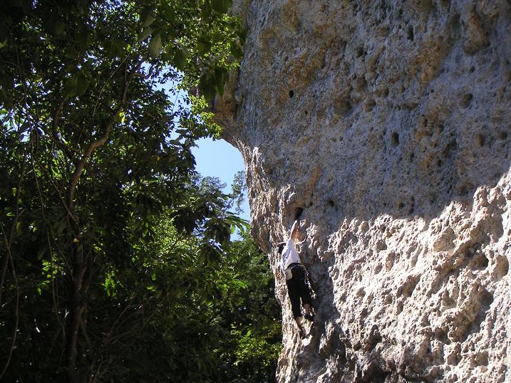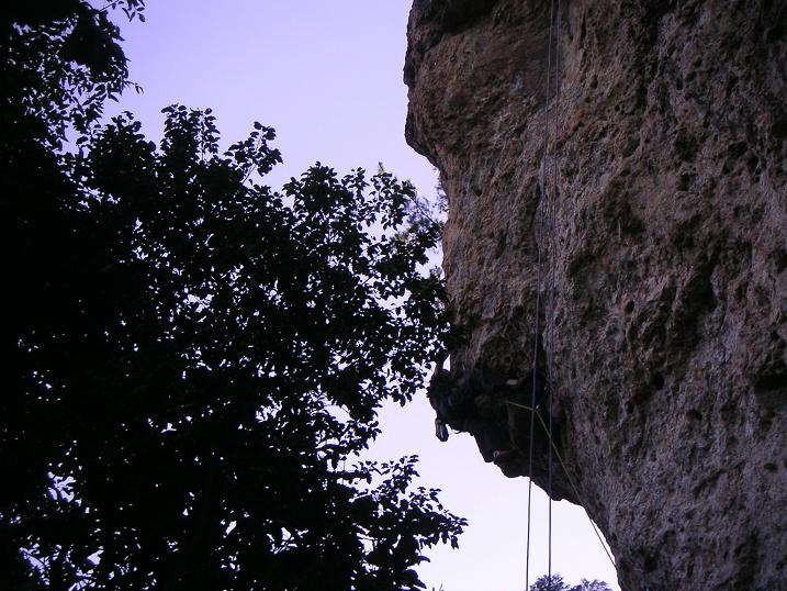 途中福井のおちゃらけ隊と合流。 パラダイスへ。 ルートを眺める。あ○きさんは「彼方へ」を やる予定だったので、便乗しようと思っていたが、 ルートを見ると、圧倒するようにハングがある。 やりたい感じじゃない・・・ でグレードが同じ「ドルフィン12a」をやることにした。 1便目 アップとヌンチャク掛け。どうせテンションがはいるし、未知の グレードだから。スリング。何でもあり。 2便目 さっき人工でやった所をじっくり探る。3ピン目 の核心入り口ムーブは解決。 しかし、核心ムーブは分かれど出来ない。遠い。。。 その頃IKUさんは早々とお目当てルート「シャムロック11a」 をレッドした。 いつの間にか、いし○とさんとシバ太君も来ていて、 芹谷状態になってる。ここは鳳来だよね。 錫杖から流れてきたらしい。 3便目 核心以外のムーブはすべて解決。 この日相棒をしてくれた、ダイダイさんは「モル のひまわり畑11b/c」をトライしていた。 長いルートでボルト11本。ルート2本分の内容と核心が ありそうに見える。見た目もムーブもカッコいい。 下部の核心を抜け、上部の核心も越えた。 何があったのか、最後の一手でフォールしてしまった。 残念。