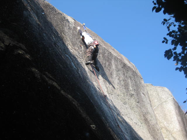 滋賀の方が来ていたので、ビレイをお願いした。 女王様でアップして、ヌンチャクを掛けるつもりでごめんなすってをやると、登れてしまった。 ごめんなすっては前に登る姿を見てるので、フラッシュでした。 予定より早く終わってしまったので、道普請をやる。これはやっぱりいいルートです。 後は、写真を撮ったり、ビレイをしたりして過ごした。