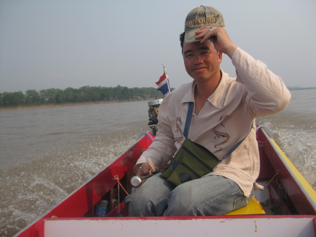 ゴールデントライアングルへ、2日目はチェンライ から北西の方へツーリングへ行ってきました。 ツーリングといっても、バイクは100ccの おんぼろです。メーター類は壊れて動かなかった。。 国道1号線を北に向かい、Mae ChenからCheng Saen に向かっていきます。 2時間ほどか。。 せっかく行ったのでボートに乗る。 一台400バーツなので、何人かでシェアすれば 安いです。6人まで。 で、メコン川をぐるっと周り、ラオスの村へ行けます。 パスポート不要。 およそ、90分のコース。 ビューポイント(タイ側)から眺める。 中州みたいなところがミャンマーで、メコン川 をはさみ、ラオス。 2日目は特に目的はないが、山道を行ってみた。 途中、山岳民族がお土産屋をやっている。 買うまで帰してくれません。 買わずに逃げてきた。。 景色はきれいでした。 |