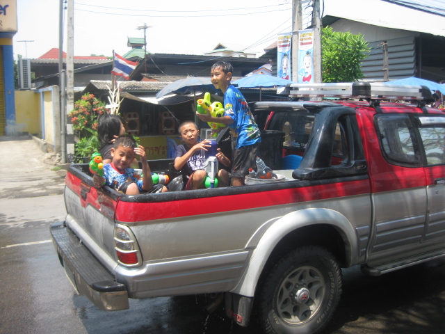 メーサイと言う街があり、国境を越えて ミャンマーの、タチレイと言う街へ行ける。 観光用に造られたような街で、お土産屋が並び色々な物 を売っている。 しかし、ミャンマーらしさはあまり感じられず なんだかなぁ、と言う感じです。 国道を走っていると水をかけられます。 いよいよ始まりました。水掛祭り。