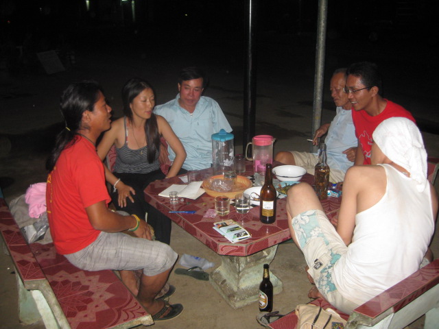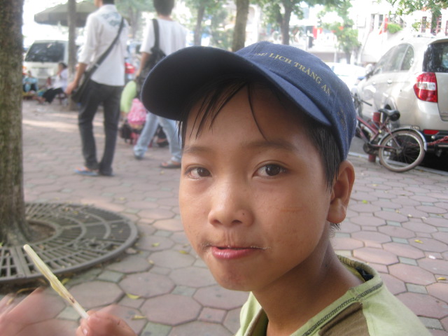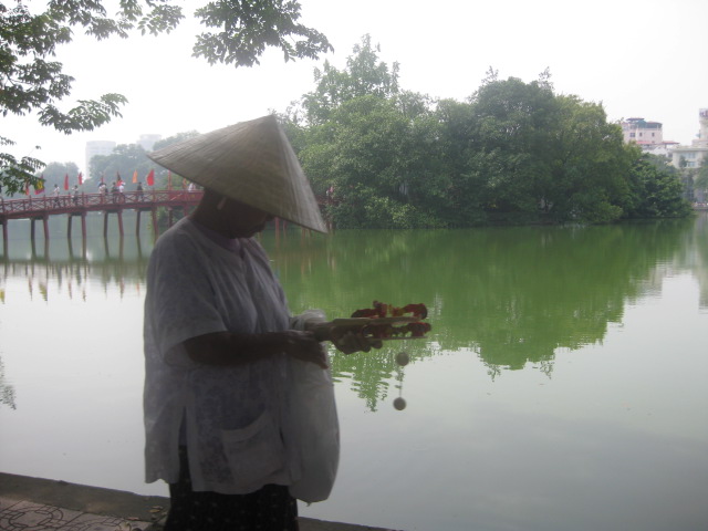 フエの町並みは青空よりも、しとしとの雨の 方が似合うと言った人がいたけれど、そうかもしれない。 でもなかなか出歩きにくいからね。。。 宿にずーっといるのも退屈なんで、晴れ間をみつけて 市場へ行った。 ドーナツとか米を衣で包んで揚げた物、チョコチョコした 物をいっぱい食べた。 どれも2000~3000D程度。 お腹がいっぱいになったところで、目的のリンゴを買った。 昨日は、1個5000Dだったけど、今日のおばちゃんは3個 で5000Dだった。 ぼられてます。。。 |