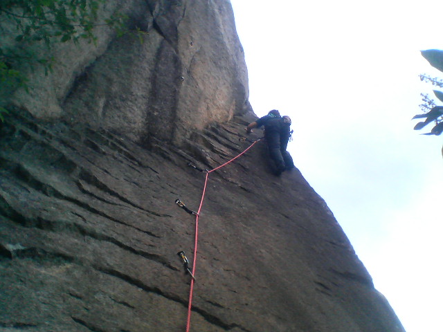 ボルダーの課題をやってみたら、ろくすけとはタイプが違うように感じたが、グレードは揃っているように思った。 ボルダーの後にルートをやるといいと聞いた事があるので、取り付いてみるが、グリース、グリースで全然ダメだった。 ボルダーと、違う部分が刺激された様で、いい感じに終われた。 |