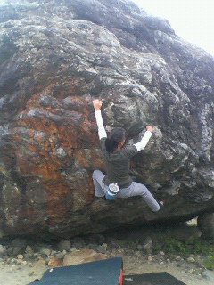 ビーチ岩の2級が面白そうだったので、触ってみます。 が、リップの一手が止まりません。 ペチペチと叩くだけで、だんだんいやになってきた。移動距離は1.5mくらいなんだけど、疲れたので終了にした。