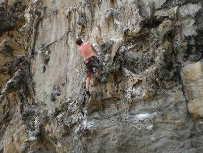 今日は、石川組7名と富山の山やさんらしき人1名だった。 初岩、初リードのヨネさんがいたので、堰堤ルートから。 コーチ、ヨネさん、Sさん、さらりと登る。 ボクは、出だしで、スリップしまくり、5回位落ちた。 ゆきんこさんがジョーズを、いきなりやっつけてしまったので、 ボクもやろうと思ったが、回収されてしまった。 しかたないので、自分で掛けに行きます。 出だし、悪いです。。。ボルトの位置も。でも、あこまで行かないと クリップ体勢になれません。そこで、4番をひとつかませて登って 行きます。 ドギツイです。最後のクリップして、終了点までの間で力尽きた。 この間は、9位だけど、ほんとに動けなくなってしまった。 2回目。 出だし、うまく越えることができたので、ジャミングをきかせて レストを繰り返しながら登り、完登できた。 ジョーズはいいルートです。 ☆3っつは確実にあります。お勧め。 最後に、トップロープでスーパークラックをやった。 体、ガタガタです。