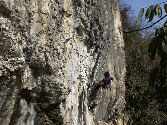 現地で福井組と合流し、いつもの顔ぶれもそろい、賑やかだった。 まず、ハングルーズ。 登るたんびに、ムーブが変わる。。。でも楽しいルートです。 そして舞姫。一部濡れているが、ヌンチャクを掛けながら登った。 今日は足にバッチリ乗れているようだ。 降りるときに、デッドラインにヌンチャクをかけた。 しかし、重要なカチとスタンスが濡れている。 細いクラック沿いにあるので、拭いてもジワジワと染み出してきて あきません。 今日1回目。 濡れたカチを触った瞬間落ちた。。。 時間ギリギリまでレストしてやった。 クラックをつたって、下の方のホールドまで濡れて いた。滑ってダメ。 今まで落ちることの無い所なので、完全に集中力が切れた。 今日は、上部のトラバースにかなりの自信を得ることが出来たし、 もう2つある確率の悪いムーブにも「こつ」というかそういうものを 掴んだ気がする。 帰りに、3月生まれクライマー+今日のメンバーで、3月会をしました。