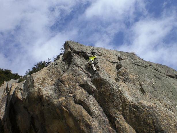 ゆきんこさんとわ○ささんとは現地で合流。天気はいいが 風が強く寒い。 タイガースでアップするが、アップアップ。 浅いポケットがいくつかかたまったところで、持ち方研究するはめになってパンプして落ちた。 トータスロード。ヌンチャクをかけに行くが隣のルートと近いので 行ったりきたりになってしまった。 2回目。足がすべって不意に落ちる。 上まで抜けようとするが、抜けられない。苦手などっ被り。 気分を変えてタイガース。 アホなボクは、また持ち方研究をしてしまった。 固めて下りる。 タイガース3回目。 持ち方は分かったのでRP。一回余計だった。 続けてトータスロード。 被ったところで力尽きてしまった。宿題・・・ 帰りみち、会いたいなって思ってた人に偶然会う。 今回は登れなかったけど、すごく楽しかった。 楽しいのは毎回だけど♪やっぱり外っていいよ! |