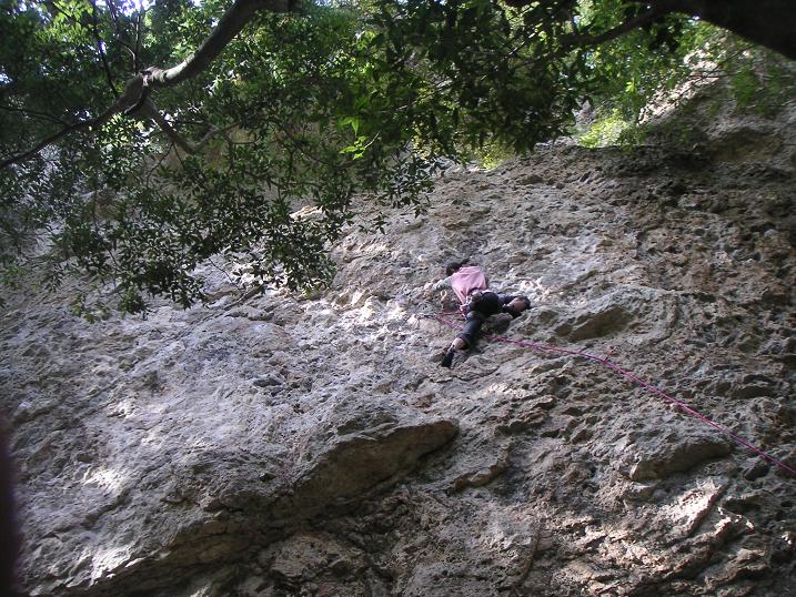 今日もソロおじさんが居ました。 昨日も来てた見たいで、ザックはデポしてありました。 何をやろうか… あんまり好きではない、ムササビをやるが、あまりにも撥ねかえされるので、1便で回収。 前傾のトレーニングしてからやります。 コーチはバイタル。 まだムーブは解決してないようだが、ヌンチャクを掛けに行く。 ソロおじさんがデッドラインに7P目まで、掛けたので春以来振りにやって見る。 ムーブは忘れたので、思い出す感じで… テンション掛けまくりで、どうにか7P目までたどり着いた。 そこから先はムーブは分かったらが、左手のリング状のカチが持てず、おもいっきり落ちる。 また次回です… コーチ。 ハング手前のムーブは解決し、ハング帯に突入。 いい感じになってきたんじゃないっすか? そのままトップロープにする。 躍起になってバイタルポイントをやっていた頃から、丁度2年がたった。 トップロープと言う事もあり、触って見る。 ホールドやムーブは忘れているが、やりこんだルートなんで、その場で当時やったであろうムーブが出てきた。 それを繋げて繋げて、ハング帯まで突入したが、落ちたので降りた。 やっぱり面白い! ボクのなかでは☆☆☆☆ルートです。 最後にコーチは、トップロープでやるが疲れ切っている。 フレッシュの時やれば、いい線行くと思う・・・ レッドポイント態勢? 帰りには別便だった、フルキチ、コデさん、みす○さんとで『例の』ラーメン屋に寄って帰りました。